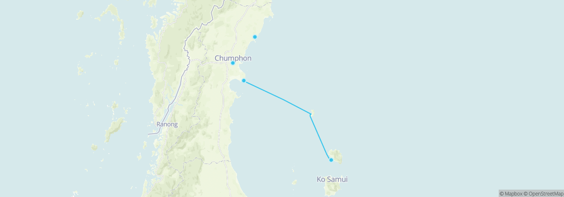 The travel distance between Chumphon to Koh Phangan is 120 km. The best option to travel from Chumphon to Koh Phangan is taking a ferry.
