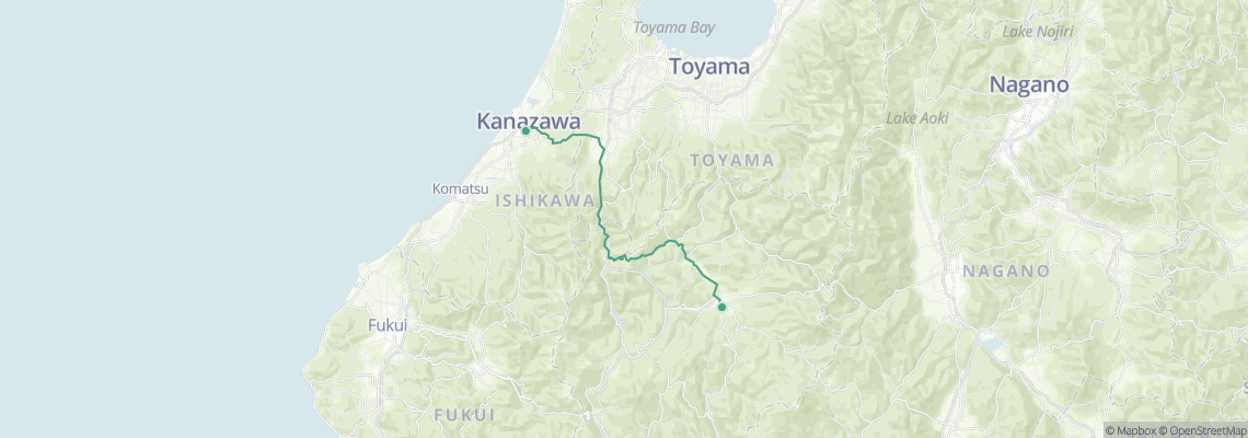 The travel distance between Kanazawa and Takayama is 120 km. The best option to travel from Kanazawa to Takayama is taking a bus.