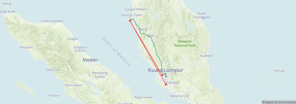 The travel distance between Kuala Lumpur and Penang is 293 km. There are two options to travel from Kuala Lumpur to Penang: taking a flight or a bus.
