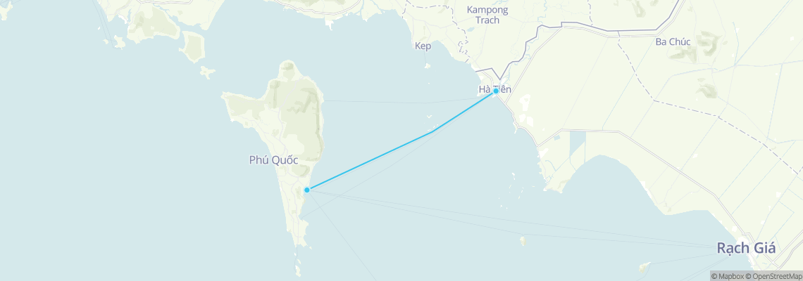 Khoảng cách từ Hà Tiên đến Phú Quốc là 45 km. Lựa chọn duy nhất để đi từ Hà Tiên đến Phú Quốc là đi bằng tàu cao tốc.